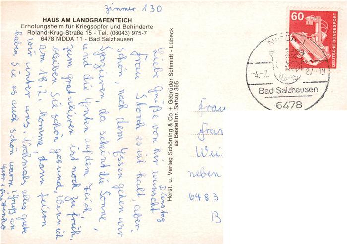 73884857 Bad Salzhausen Nidda VdK Haus am Landgrafenteich Gaststube Zimmer Hallenbad postalisch nicht gelaufen Erhaltung siehe scans [WerneD78] KatCode: 11110006440016
