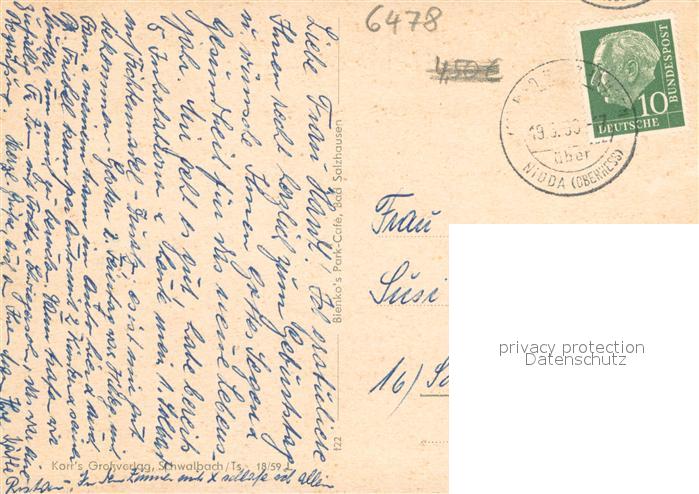73699215 alte Postkarte Bad Salzhausen Park Cafe Kurhaus Brunnen Badehaus Muettergenesungsheim Ernst Ludwig Heim Saline postalisch gelaufen Erhaltung siehe scans [FriedD77] KatCode: 11110006440016