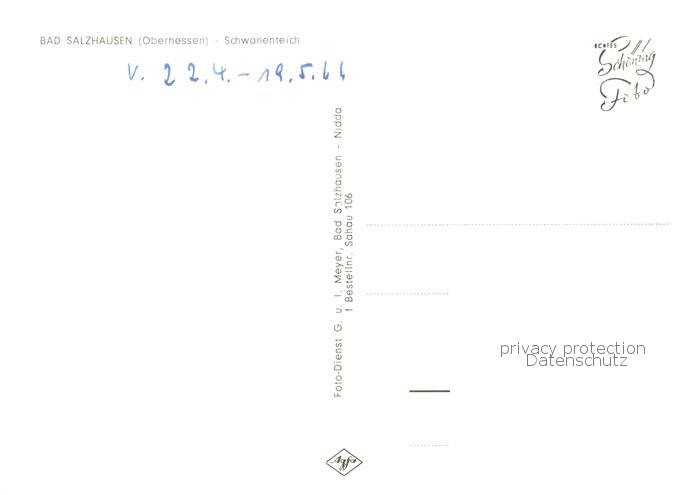 73803650 alte Postkarte Bad Salzhausen Schwanenteich postalisch gelaufen Erhaltung siehe scans [WerneD78] KatCode: 11110006440016