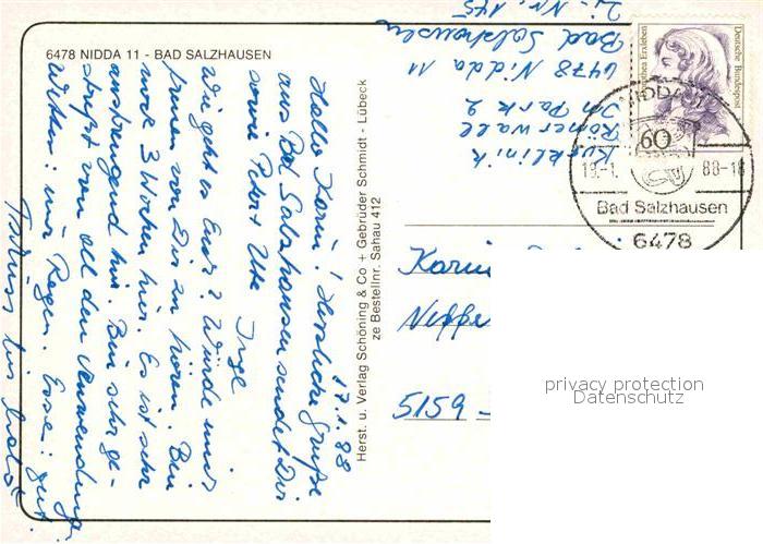 72780928 alte Postkarte Bad Salzhausen Sole Bewegungsbad postalisch gelaufen Erhaltung siehe scans [FriedD77] KatCode: 11110006440016