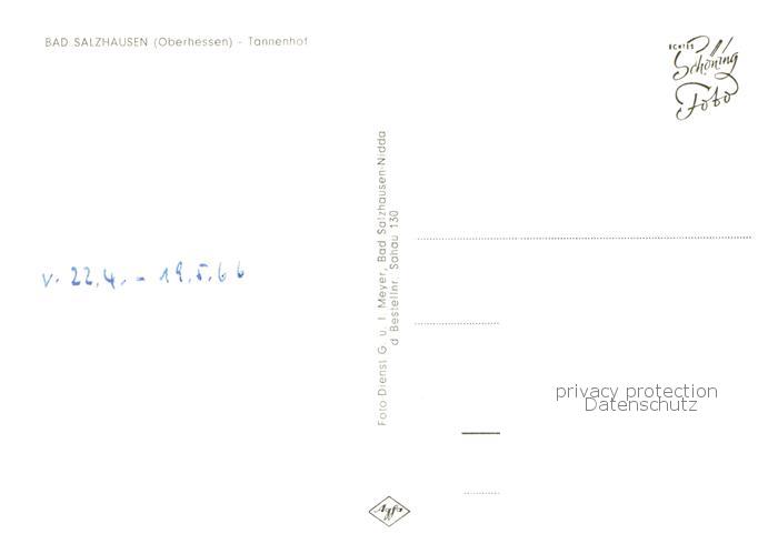 73804187 Bad Salzhausen Tannenhof Gaststaette postalisch nicht gelaufen Erhaltung siehe scans [FriedD77] KatCode: 11110006440016