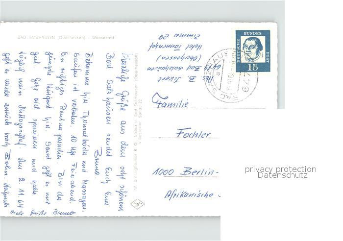 71933493 alte Postkarte Bad Salzhausen Wasserrad postalisch gelaufen Erhaltung siehe scans KatCode: 11110006440016