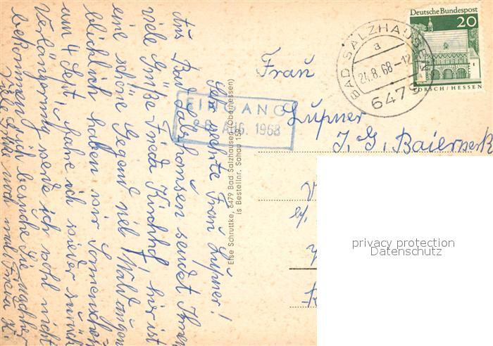 73310811 alte Postkarte Bad Salzhausen Wasserrad Salzquelle Badehaus Kurhaus Stahlquelle Lithiumquelle postalisch gelaufen Erhaltung siehe scans [FriedD77] KatCode: 11110006440016