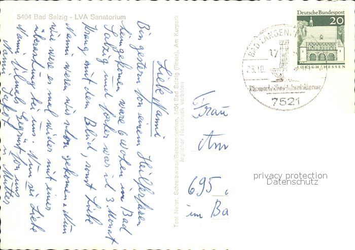 72494198 alte Postkarte Bad Salzig LVA Sanatorium postalisch gelaufen Erhaltung siehe scans KatCode: 11110007140501