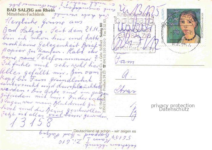 74026242 alte Postkarte Bad Salzig Mittelrhein-Fachklinik postalisch gelaufen Erhaltung siehe scans [FriedD77] KatCode: 11110007140501