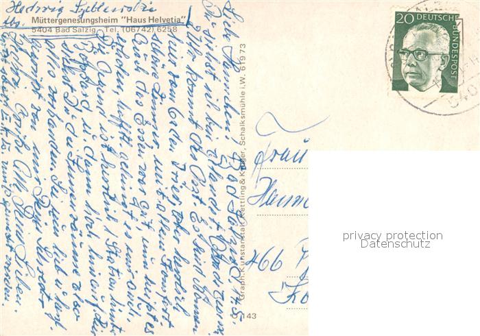 73634957 alte Postkarte Bad Salzig Muettergenesungsheim Haus Helvetia Gastraeume Hauskapelle postalisch gelaufen Erhaltung siehe scans [WerneD78] KatCode: 11110007140501