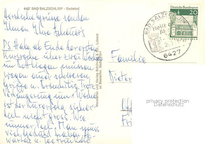 73202171 alte Postkarte Bad Salzschlirf Badehof postalisch gelaufen Erhaltung siehe scans [KathaD81] KatCode: 11110006631001
