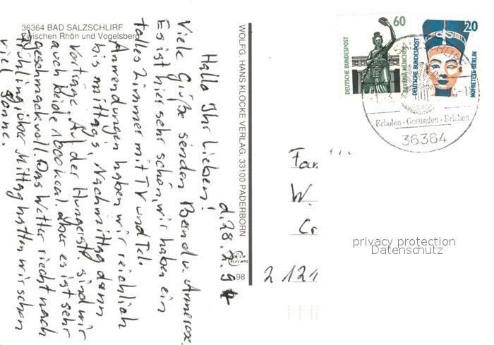 73212407 alte Postkarte Bad Salzschlirf Badehof Taubenhaeuschen Kurtheater postalisch gelaufen Erhaltung siehe scans [PaolaD17] KatCode: 11110006631001