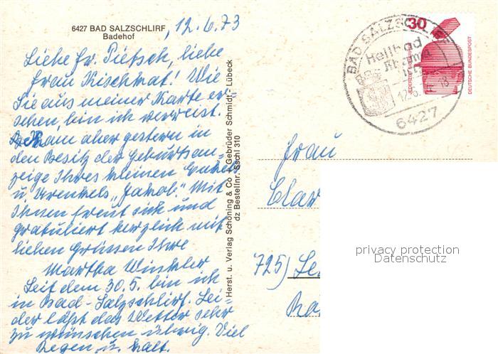 73009259 alte Postkarte Bad Salzschlirf Badehotel Schwanenteich postalisch gelaufen Erhaltung siehe scans [WerneD78] KatCode: 11110006631001