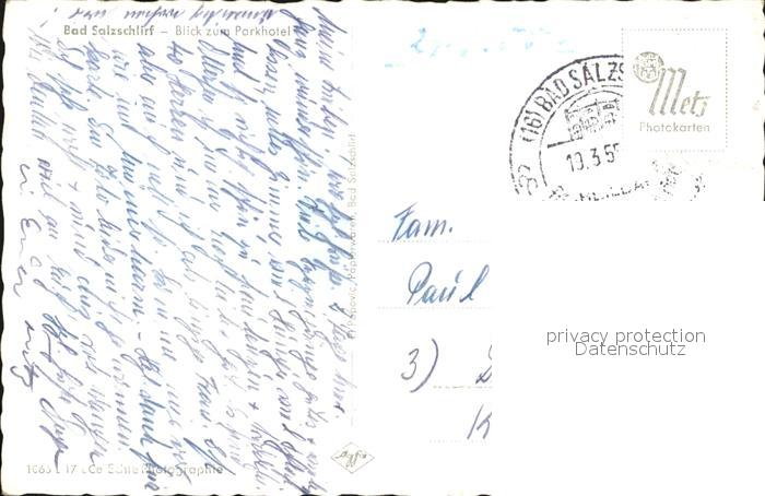 72478199 alte Postkarte Bad Salzschlirf Bruecke Blick zum Parkhotel postalisch gelaufen Erhaltung siehe scans KatCode: 11110006631001