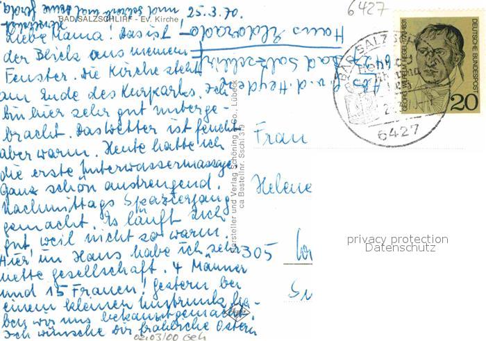 72915315 alte Postkarte Bad Salzschlirf Ev Kirche postalisch gelaufen Erhaltung siehe scans [WerneD78] KatCode: 11110006631001