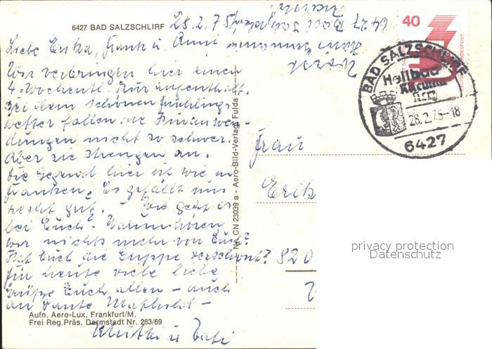 71939284 alte Postkarte Bad Salzschlirf Fliegeraufnahme postalisch gelaufen Erhaltung siehe scans KatCode: 11110006631001