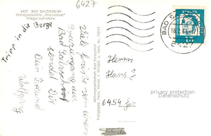 73706127 alte Postkarte Bad Salzschlirf Fliegeraufnahme Waldgaststaette Marienlust postalisch gelaufen Erhaltung siehe scans [LiesaD40] KatCode: 11110006631001