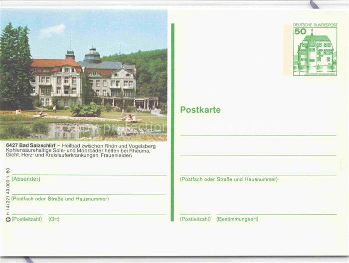 74122850 Bad Salzschlirf Fulda Hessen Heilbad Kurhaus Parkanlagen postalisch nicht gelaufen Ganzsache (eingedruckte Briefmarke) Erhaltung siehe scans [FriedD77] KatCode: 11110006631001