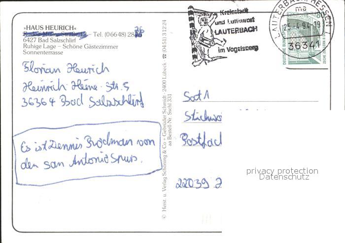 72128381 alte Postkarte Bad Salzschlirf Haus Heinrich Terrasse Zimmer postalisch gelaufen Erhaltung siehe scans KatCode: 11110006631001