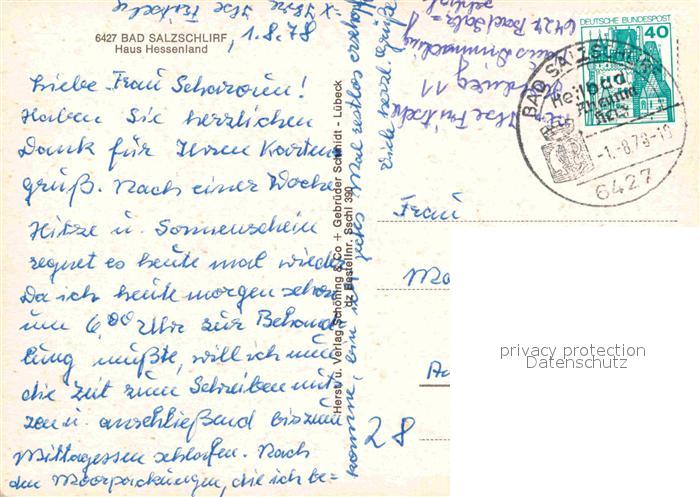 72794872 alte Postkarte Bad Salzschlirf Haus Hessenland postalisch gelaufen Erhaltung siehe scans [KathaD81] KatCode: 11110006631001