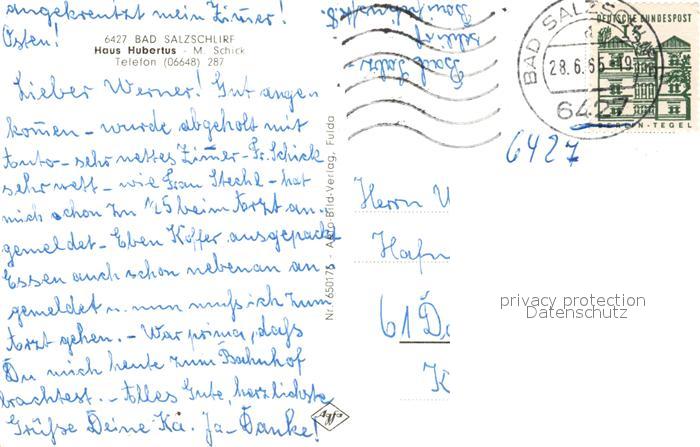 73356433 alte Postkarte Bad Salzschlirf Haus Hubertus postalisch gelaufen Erhaltung siehe scans [FriedD77] KatCode: 11110006631001