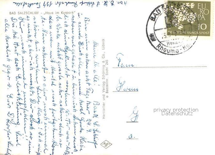72985606 alte Postkarte Bad Salzschlirf Haus im Kurpark postalisch gelaufen Erhaltung siehe scans [FriedD77] KatCode: 11110006631001