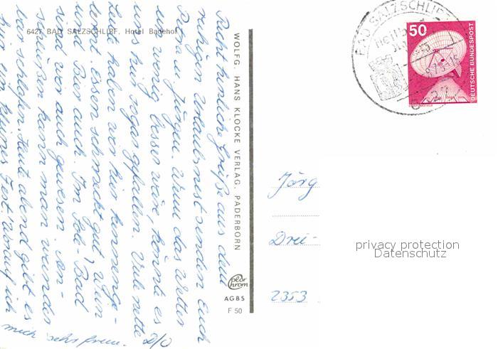 72845443 alte Postkarte Bad Salzschlirf Hotel Badehof postalisch gelaufen Erhaltung siehe scans [AndreD76] KatCode: 11110006631001