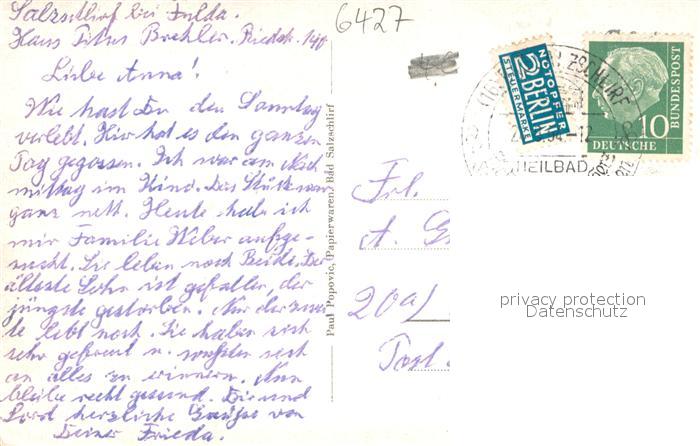 73706322 alte Postkarte Bad Salzschlirf Hotel Badehof mit Goldfischweiher postalisch gelaufen Erhaltung siehe scans [LiesaD40] KatCode: 11110006631001