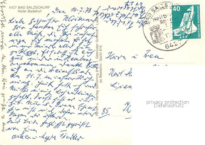 73719943 alte Postkarte Bad Salzschlirf Hotel Badehof Park Seerosen Teich postalisch gelaufen Erhaltung siehe scans [FriedD77] KatCode: 11110006631001