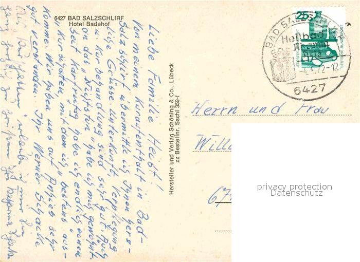 72878648 alte Postkarte Bad Salzschlirf Hotel Badehof Park Teich postalisch gelaufen Erhaltung siehe scans [FriedD77] KatCode: 11110006631001