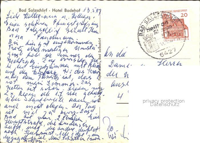 72283650 alte Postkarte Bad Salzschlirf Hotel Badehof Seerosenteich postalisch gelaufen Erhaltung siehe scans KatCode: 11110006631001