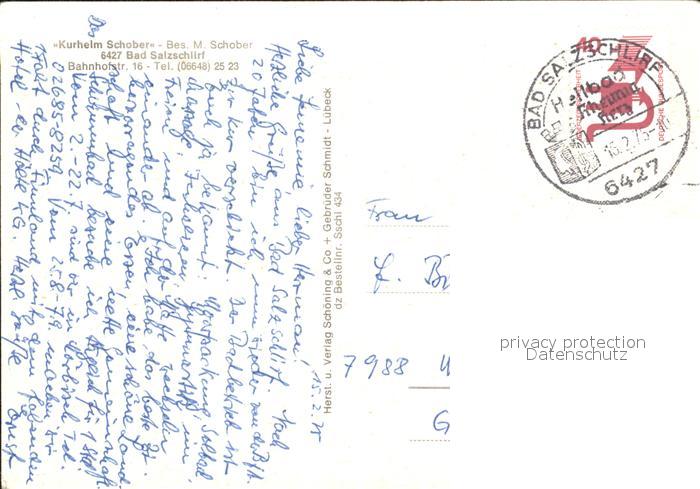 72325774 alte Postkarte Bad Salzschlirf Kurheim Schober postalisch gelaufen Erhaltung siehe scans KatCode: 11110006631001