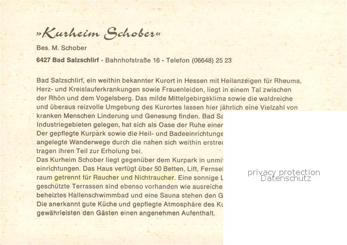 73652869 Bad Salzschlirf Kurheim Schober Terrasse Restaurant Hallenbad postalisch nicht gelaufen Werbekarte (keine Postkarte) Erhaltung siehe scans [FriedD77] KatCode: 11110006631001
