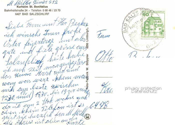 72886264 alte Postkarte Bad Salzschlirf Kurheim St. Bonifatius postalisch gelaufen Erhaltung siehe scans [LiesaD40] KatCode: 11110006631001
