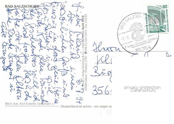 72885844 alte Postkarte Bad Salzschlirf Kurhotel Badehof Haus der Standesbeamten Kurpark Rathaus Sole Hallenbad Nachtaufnahme postalisch gelaufen Erhaltung siehe scans [FriedD77] KatCode: 11110006631001