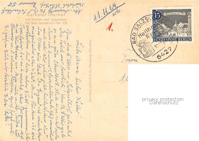 73644717 alte Postkarte Bad Salzschlirf Kurhotel Illerhof mit Garten und Liegewiese Fliegeraufnahme postalisch gelaufen Erhaltung siehe scans [WerneD78] KatCode: 11110006631001