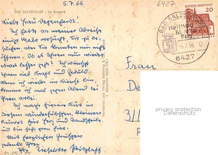 72908107 alte Postkarte Bad Salzschlirf Kurpark postalisch gelaufen Erhaltung siehe scans [NatalD47] KatCode: 11110006631001