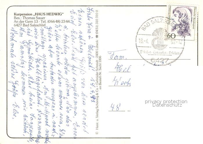 73643531 alte Postkarte Bad Salzschlirf Kurpension Haus Hedwig Gaststube Aufenthaltsraum postalisch gelaufen Erhaltung siehe scans [WerneD78] KatCode: 11110006631001