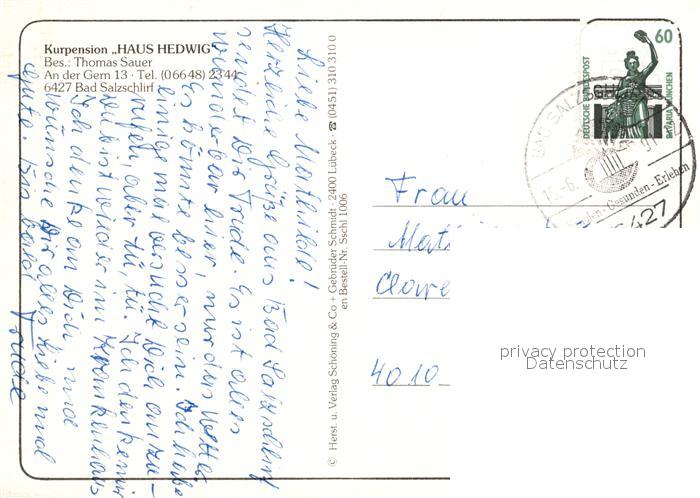 73203539 alte Postkarte Bad Salzschlirf Kurpension Haus Hedwig postalisch gelaufen Erhaltung siehe scans [FriedD77] KatCode: 11110006631001