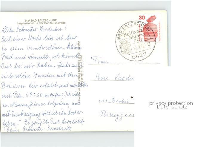 72255197 alte Postkarte Bad Salzschlirf Kurpension in der Bonifatiusstrasse postalisch gelaufen Erhaltung siehe scans KatCode: 11110006631001