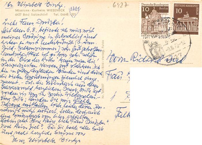 73884087 alte Postkarte Bad Salzschlirf Missions Kurheim Wieseneck postalisch gelaufen Erhaltung siehe scans [FriedD77] KatCode: 11110006631001