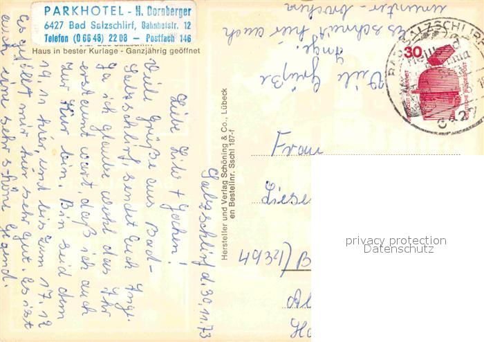 72663255 alte Postkarte Bad Salzschlirf Park-Hotel postalisch gelaufen Erhaltung siehe scans [NatalD47] KatCode: 11110006631001