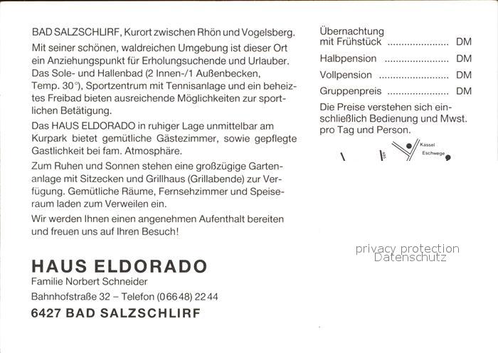 72515678 Bad Salzschlirf Pension Haus Eldorado postalisch nicht gelaufen Werbekarte (keine Postkarte) Erhaltung siehe scans KatCode: 11110006631001
