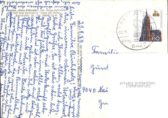 71859436 alte Postkarte Bad Salzschlirf Pension Haus Eldorado postalisch gelaufen KatCode: 11110006631001