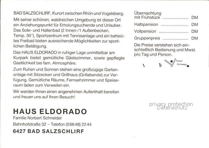 72515674 Bad Salzschlirf Pension Haus Eldorado postalisch nicht gelaufen Werbekarte (keine Postkarte) Erhaltung siehe scans KatCode: 11110006631001