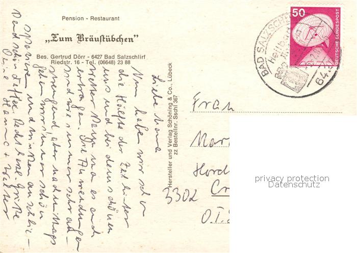 73568826 alte Postkarte Bad Salzschlirf Pension Restaurant Zum Braeustuebchen Kegelbahn postalisch gelaufen Erhaltung siehe scans [FriedD77] KatCode: 11110006631001