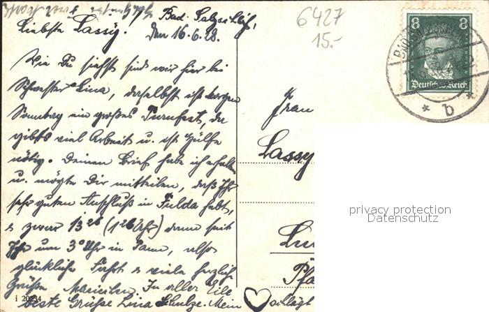72122194 alte Postkarte Bad Salzschlirf Salzschlirfer Badehof postalisch gelaufen Erhaltung siehe scans KatCode: 11110006631001