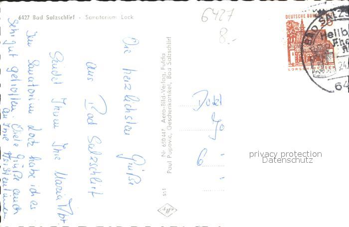 72129165 alte Postkarte Bad Salzschlirf Sanatorium Lock postalisch gelaufen KatCode: 11110006631001