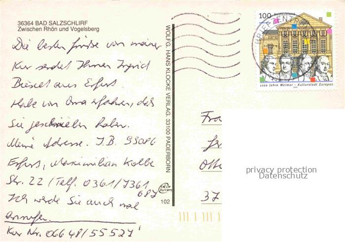 74029324 alte Postkarte Bad Salzschlirf Teilansicht Kurort postalisch gelaufen Fliegeraufnahme Erhaltung siehe scans [FriedD77] KatCode: 11110006631001
