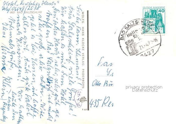 73017948 alte Postkarte Bad Salzschlirf Teilansicht Mariengrotte Hotel Badehof postalisch gelaufen Erhaltung siehe scans [WerneD78] KatCode: 11110006631001