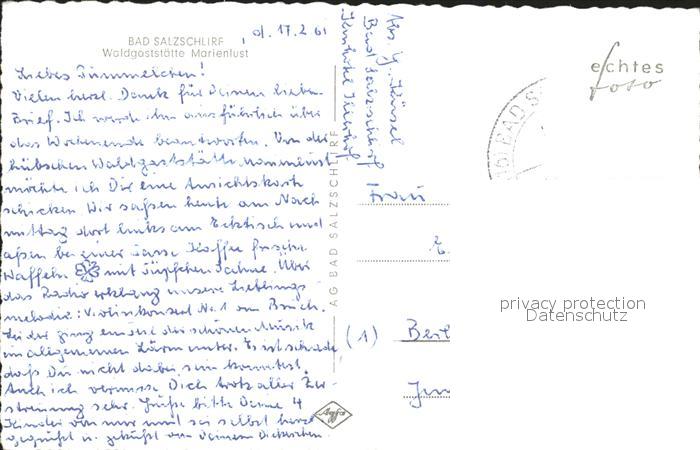 72120798 alte Postkarte Bad Salzschlirf Waldgaststaette Marienlust postalisch gelaufen Erhaltung siehe scans KatCode: 11110006631001