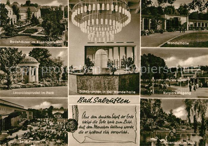72977139 alte Postkarte Bad Salzuflen Badehaeuser Rosengarten Leopoldsprudel Kurpark Konzert Trinkbrunnen Wandelhalle Ententeich postalisch gelaufen Erhaltung siehe scans [FriedD77] KatCode: 11110005766008