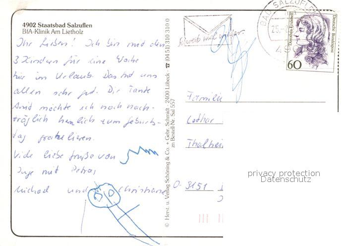 72970634 alte Postkarte Bad Salzuflen BfA Klinik Park Fussgaengerzone Fachwerkhaeuser Saline postalisch gelaufen Erhaltung siehe scans [FriedD77] KatCode: 11110005766008
