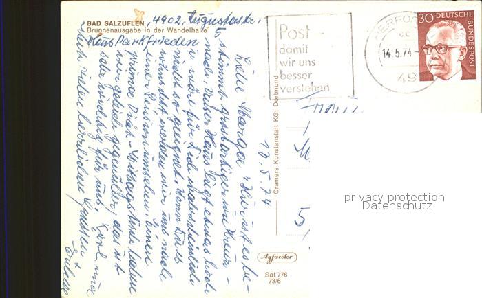 72024348 alte Postkarte Bad Salzuflen Brunnenausgabe Wandelhalle postalisch gelaufen Erhaltung siehe scans KatCode: 11110005766008